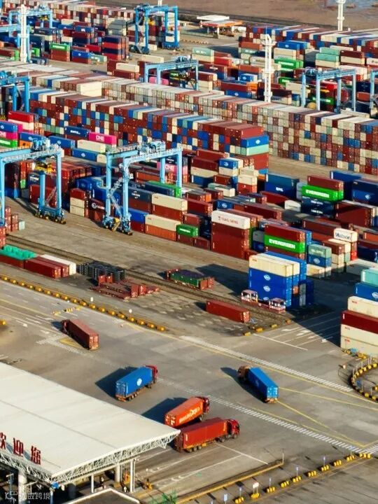 身边集卡穿梭,头顶桥吊呼啸