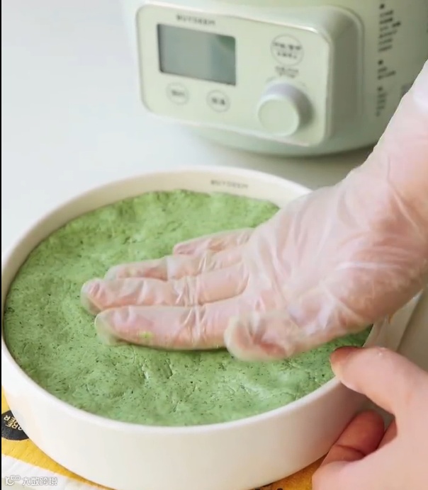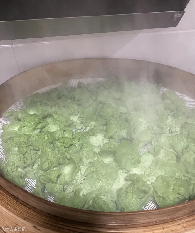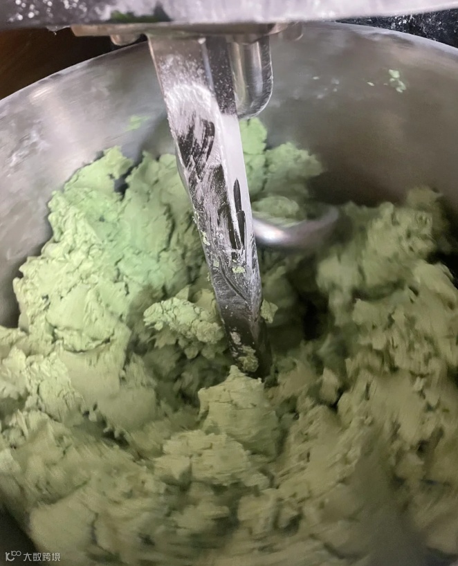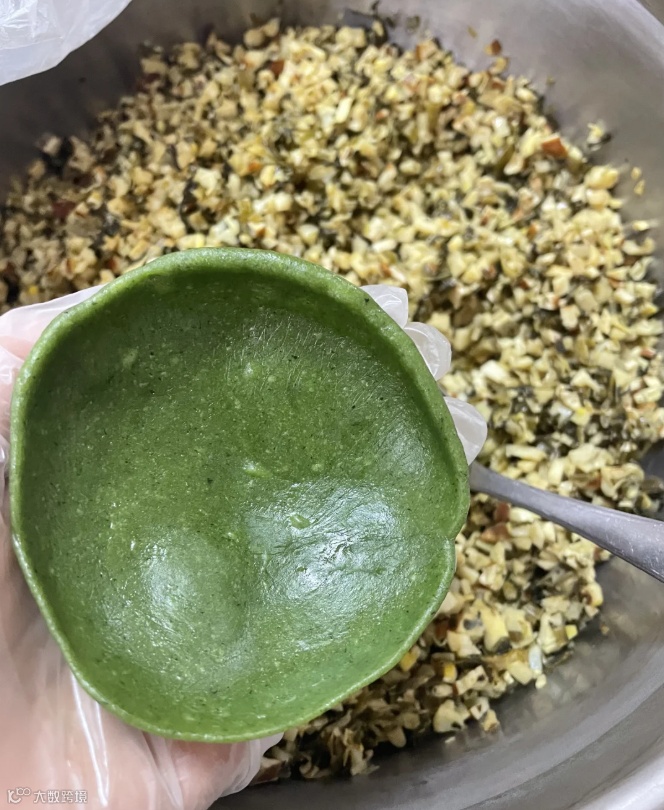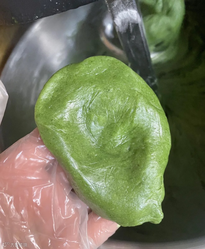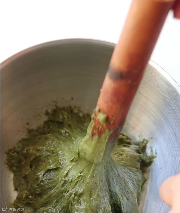 tips:艾草量越多,清明粿的颜色越深。