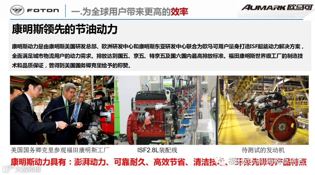 【欧马可一直致力于满足高端高效物流客户的需求,全系专属匹配康明斯动力】