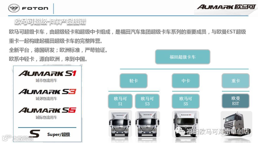全球高端中轻卡引领者—欧马可海南直营店,主营欧马可S1、S3、S5超级卡车,全系专属匹配康明斯动力,20000公里超长保养,4年不限里程超长质保,整车深度链和奔驰技术,各式车厢覆盖3.2米~9.8米,动力覆盖130马力~210马力,更有四缸机之王康明斯4.5L超强动力40000公里超长保养,5年不限里程超长质保。欧马可S1/S3超级轻卡整车享2年不限里程质保,S5超级中卡整车享3年不限里程质保。