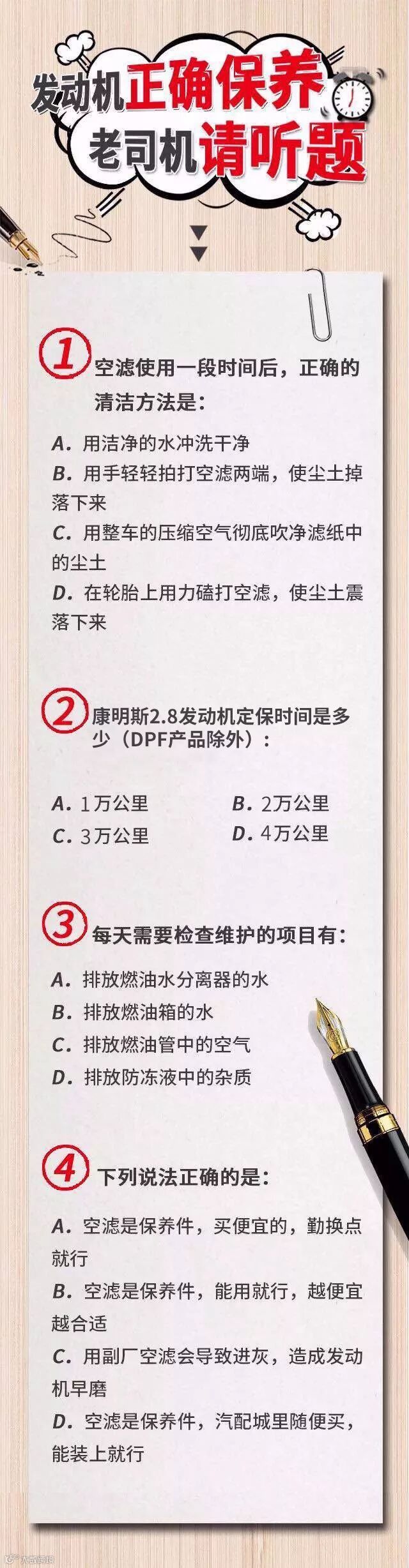 下面有四道关于保养的题目,