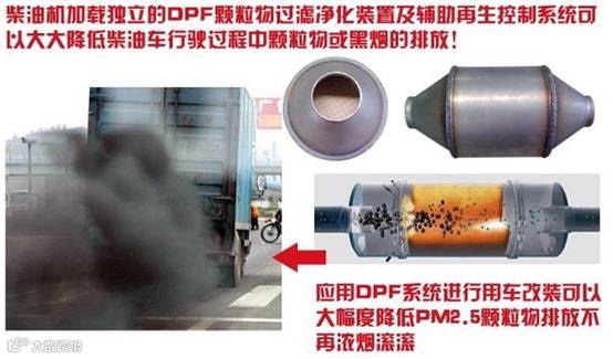 DPF是安装在排气系统系统中,通过DPF能将尾气中的颗粒物过滤捕捉,可以减少尾气中的颗粒物。通常过滤效果能达到70%-90%。PM是啥?卡车尾气中的黑烟就是PM。