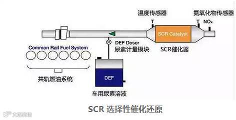 SCR为选择性催化还原技术,主要利用尿素为还原剂,在选择性催化剂的还原作用下,将尾气中的氮氧化物还原成氮气与水。目前SCR技术在国产重卡上使用最多。