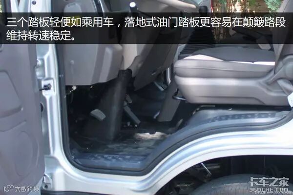 油离刹车找下感觉,轻,像轿车一样轻,落地式油门踏板以脚跟为轴特别容易控制一个恒定的开度。