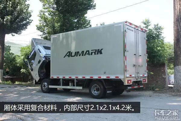 2.1x2.1x4.2米的车厢容积高达16.5立方米,复合板材质的车厢搭配轻量化的底盘,整备质量进2.8吨左右,谁还说轻卡不超载不能拉货?