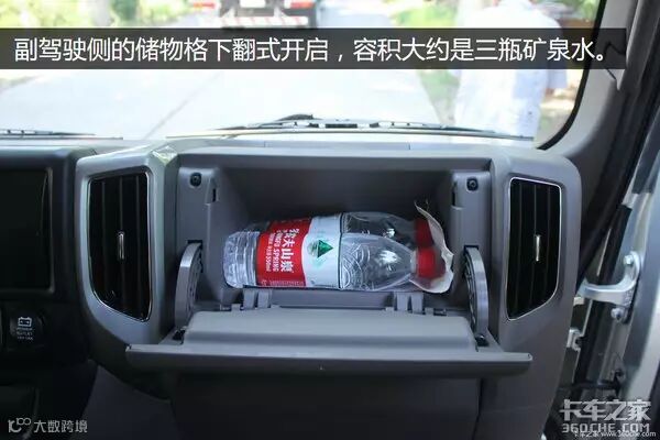 副驾驶储物格开门阻力刚刚好,关门声音沉闷,空间可以满足短途配送的随车物品携带。