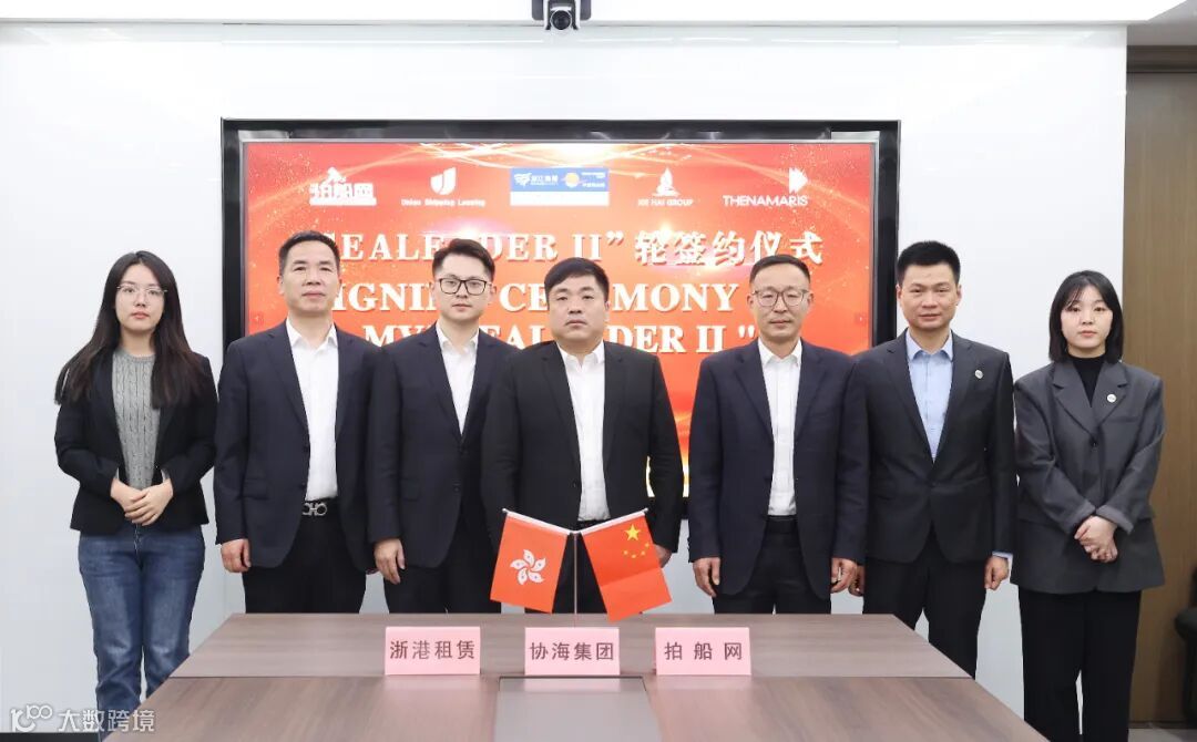 2月26日下午,浙江省海港集团、宁波舟山港集团所属浙港租赁、浙江拍船网,与新加坡客户协海集团,分别代表船舶租赁方、交易服务方和船舶承租方通过现场签约,希腊船东通过远程签约,成功落地一艘18万吨级好望角型散货船直接租赁项目。这是集团开展的首单跨境船舶直接租赁项目,也为后续开展国际航运金融服务建立了可复制的操作范本。