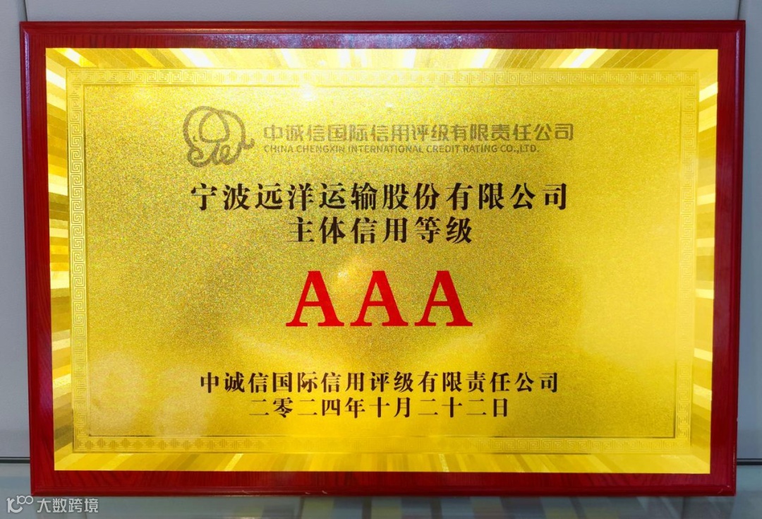 11月6日,宁波远洋收到由中诚信国际信用评级有限责任公司颁发的AAA级主体信用等级奖牌,评级展望为“稳定”,意味着该公司成功跻身国内企业信用等级第一梯队,成为浙江省首家获评AAA级主体信用等级的航运企业,企业形象、财务状况以及战略规划得到资本市场的高度认可。