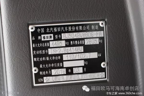 驾驶室内铭牌就是身份标识,超能版换装了ISF2.8s4148V型号发动机,2.8L排量4缸148马力。超值版则是ISF2.8s4117V型号117马力的低功率版的发动机。