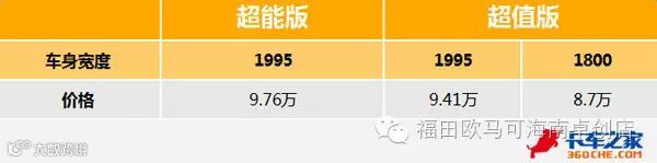 欧马可3系超值版有1800、1995两种宽度驾驶室,而超能版只有1995宽度驾驶室。1800驾驶室车型的大梁宽度也是较窄的,载重级别比不上1995版本车型,因此价格相对较低。而同样是1995车宽的欧马可3系,超能版价格比超值版高三千五。那么高出这样的价格,买超能版值不值呢?