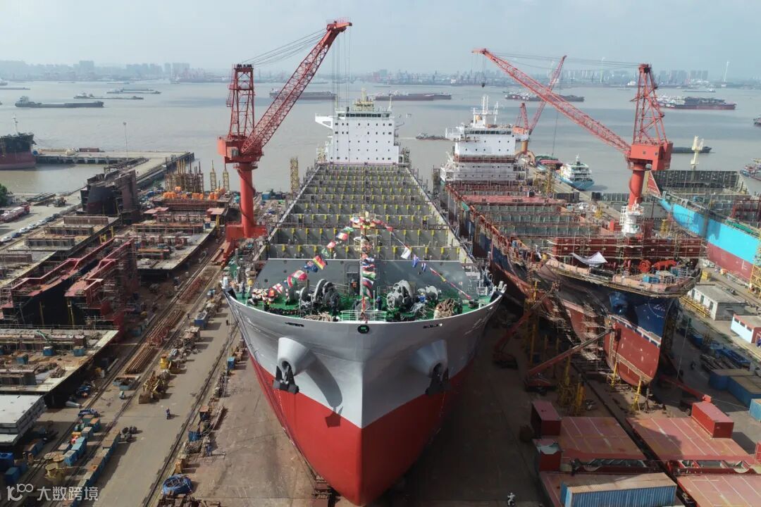图为宁波远洋绿色智能船舶“宁远宁波”轮下水现场。