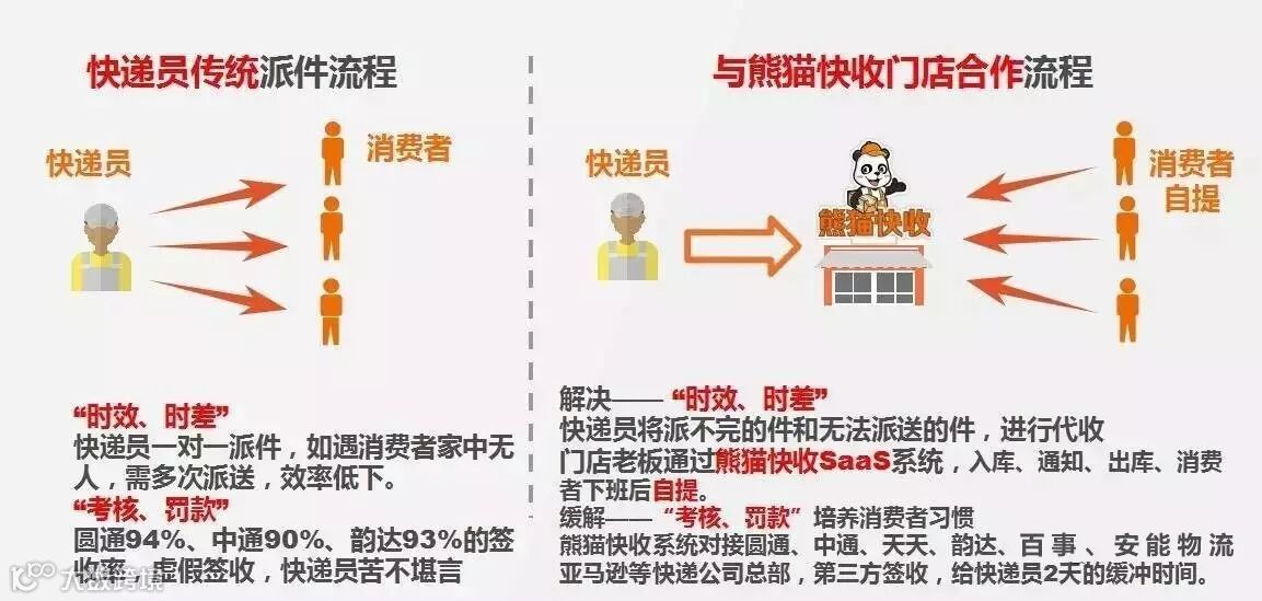 熊猫快收是南京百米需旗下专注“社区物流最后一百米”的互联网品牌,主要向用户提供快递代收、代退货、第三方O2O生活服务的落地体验,以及票务缴费、社区金融等便民服务。作为国内领先的社区物流综合服务商,旗下拥有近5000家业务网点,200多位城市合伙人,与三通一达、顺丰、中国银联、中国电信等形成了稳定的合作关系。