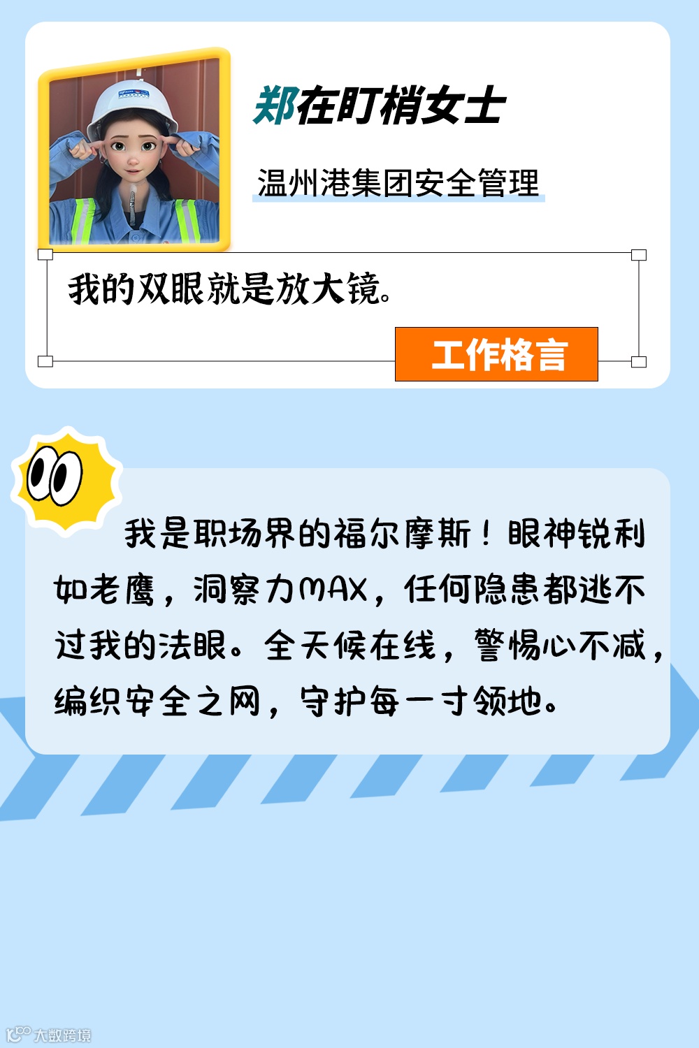 素材提供 | 汪舒婷 张迅(梅东公司)李瑶琦(北三集司)陈必超(港强公司)郑凯威(轮司)林超(物流集团)郑伊纯(温州港集团)陈佳蓓(北二集司)张晨阳(海港建设)王敏倩(南京明州)李昕宸(头门港公司)张宏(智港通)卢梦倩(北一集司)