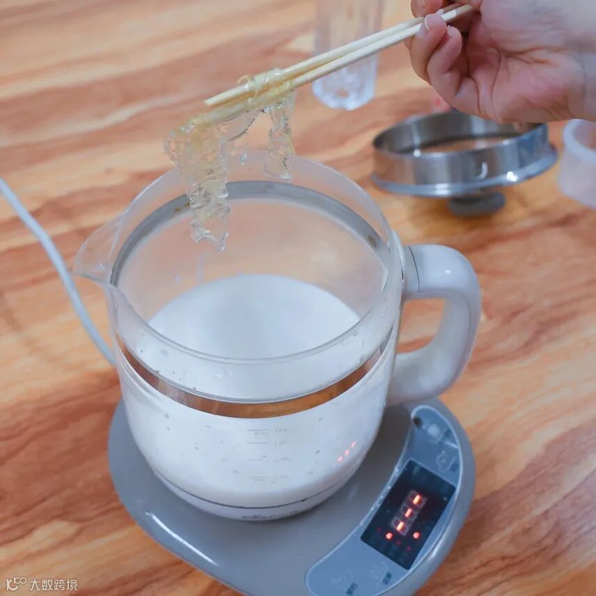 牛奶用小火烧开,加入泡软的吉利丁片,不停搅拌至吉利丁片完全融化,将其倒入杯中,冷却后放入冰箱冷藏。