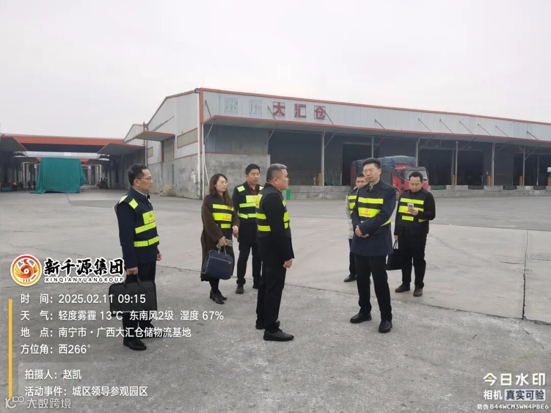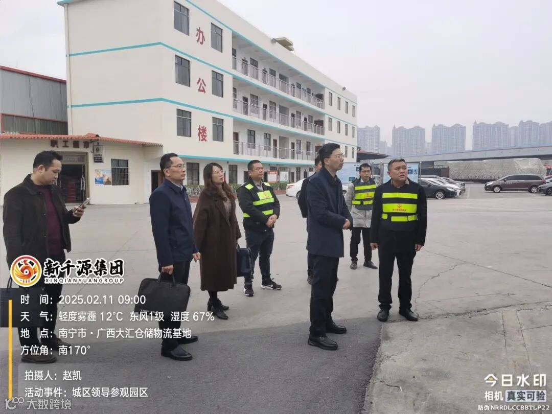2025年2月11日,南宁市兴宁区委副书记文瑞、区委办公室副主任苏帅帆、城区交通运输局局长陆先武、城区经信局副局长彭惠萍一行莅临大汇仓储物流基地进行考察调研。此次考察旨在深入了解大汇仓储物流基地的运营情况,探讨如何进一步优化区域物流产业布局,提升物流服务水平,促进地方经济发展。