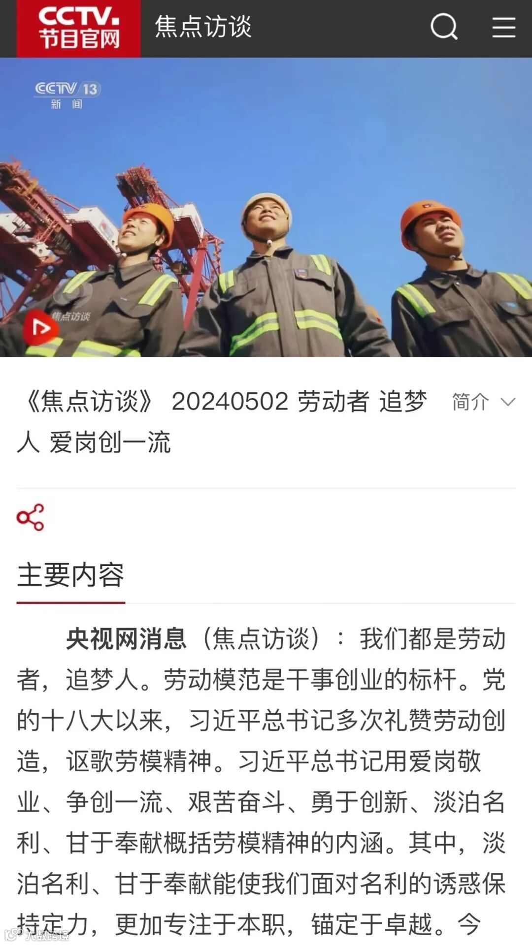 芳菲五月,劳动光荣。在五一国际劳动节期间,广大海港劳动者用坚守书写劳动赞歌,用汗水诠释劳动精神。连日来,中央电视台、光明日报、浙江日报、浙江广电等中央、省市各级媒体纷纷聚焦报道宁波舟山港生产一线火热场景及劳模工匠风采,让浙江海港人在这个“五月天”星光闪耀。快跟随镜头一起领略海港劳动者的勤奋身姿↓↓↓