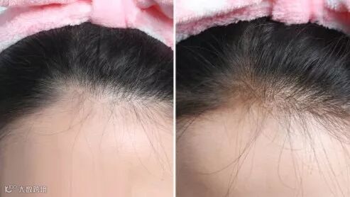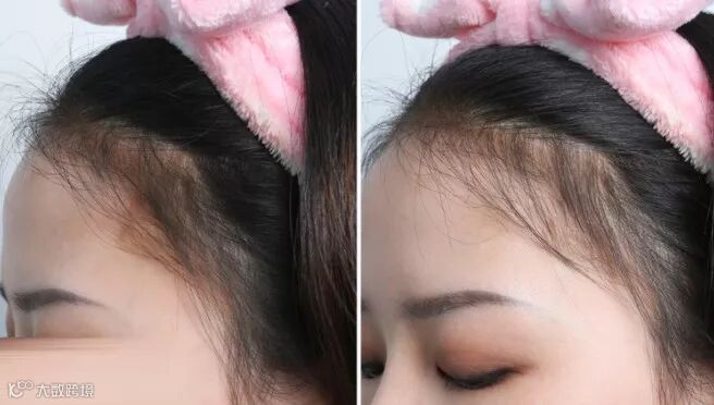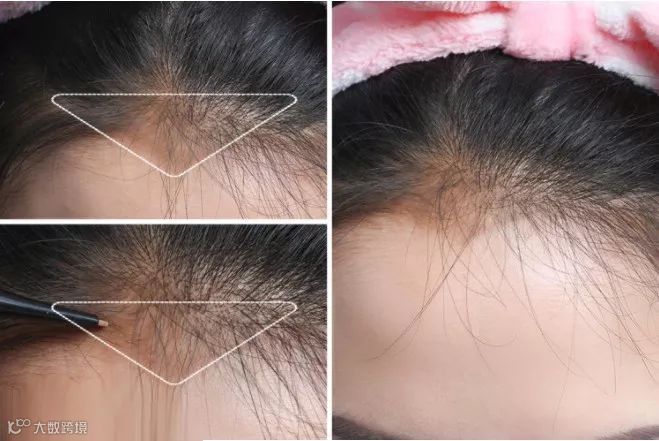 这个是我自己的发际线。额顶发量少,就会看起来有点秃。我觉得这和我以前长发时候爱扎高马尾有关。