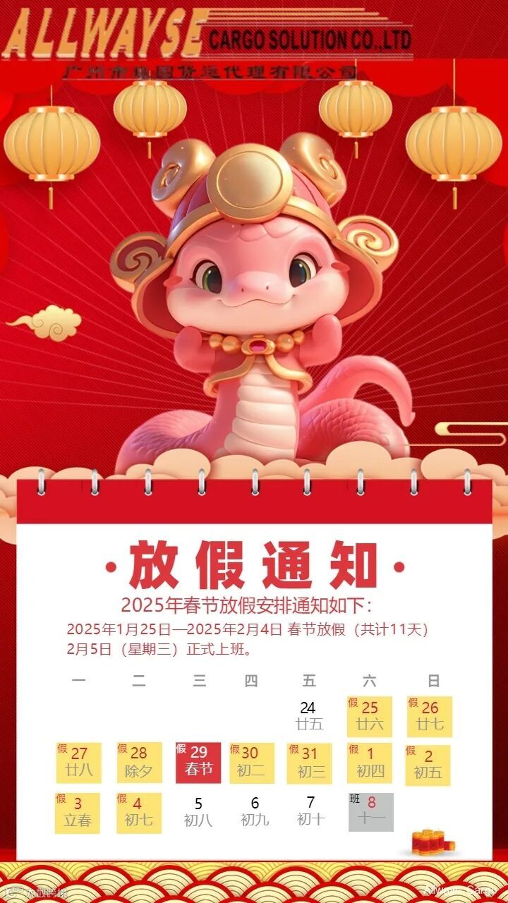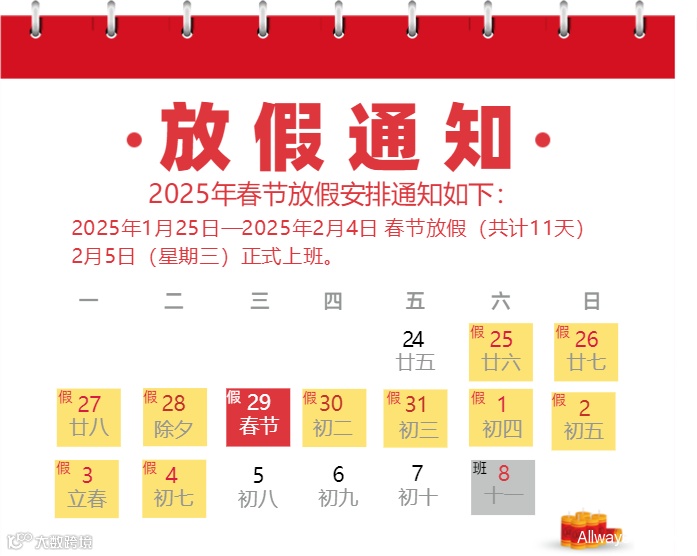 Thank you for your consistent support and trust! The Spring Festival is approaching. In accordance with national regulations and considering the actual situation of our company, the following holiday arrangements are hereby made.