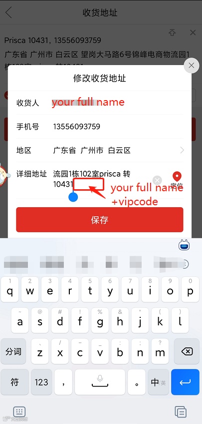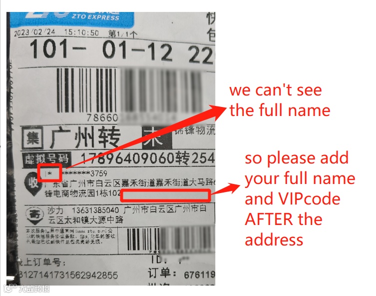 Step 4, add your full name and vip number in the last column after the detailed address.