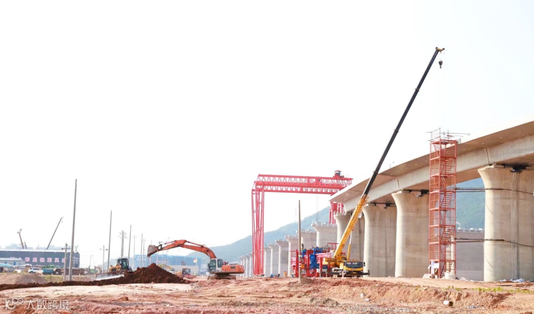 今年以来,在集团“双一流”建设指引下,作为宁波舟山港“第六港区”建设的核心载体,也是世界一流强港建设标志性项目的义乌(苏溪)国际枢纽港项目,正加快建设步伐。日前,项目一期工程——金甬铁路苏溪集装箱办理站装卸线1号特大桥首梁架设成功,整体建设进度正朝着年底基本建成的目标持续推进。