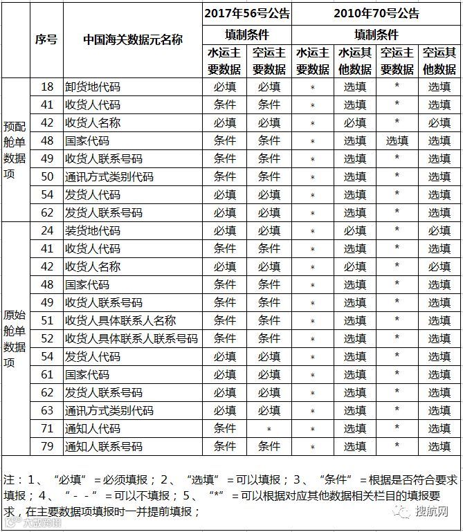 公告第五条第(一)、(二)项对现行的按照按照2010年70号公告制定的原始和预配舱单部分数据项进行了调整,看起来好复杂有木有?