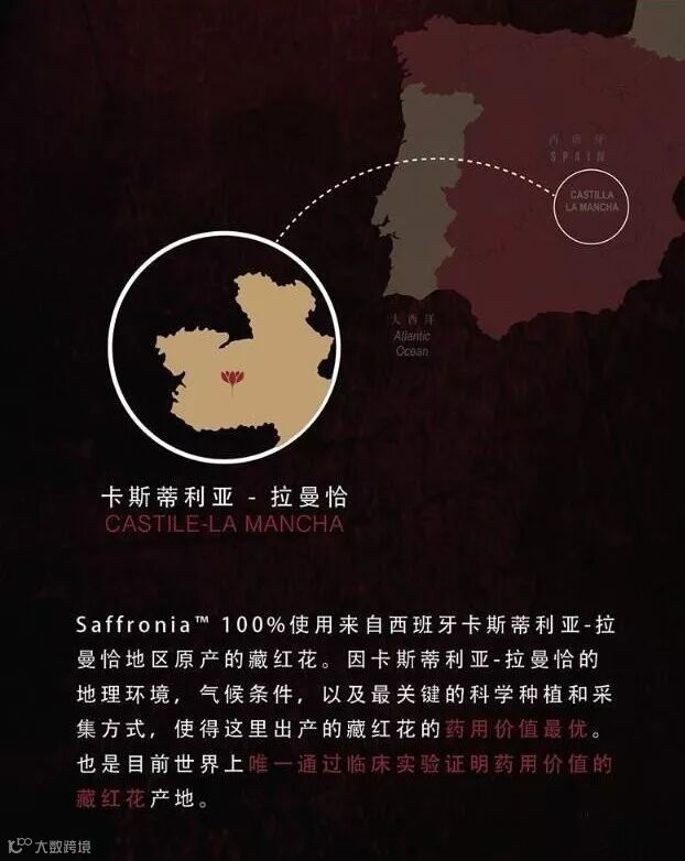 Unichi藏红花100%使用开花期一周内、来自西班牙卡斯蒂利亚-拉曼恰地区的藏红花,原料100%可追溯。