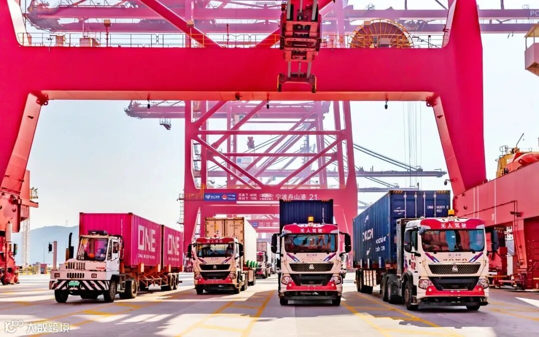 当下,金塘港区智能牵引车(ICT)和智能导引车(IGV)组合而成的无人集卡车队,单日作业量突破3000标准箱、单月超6万标准箱。