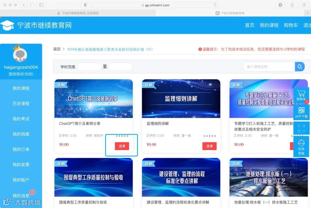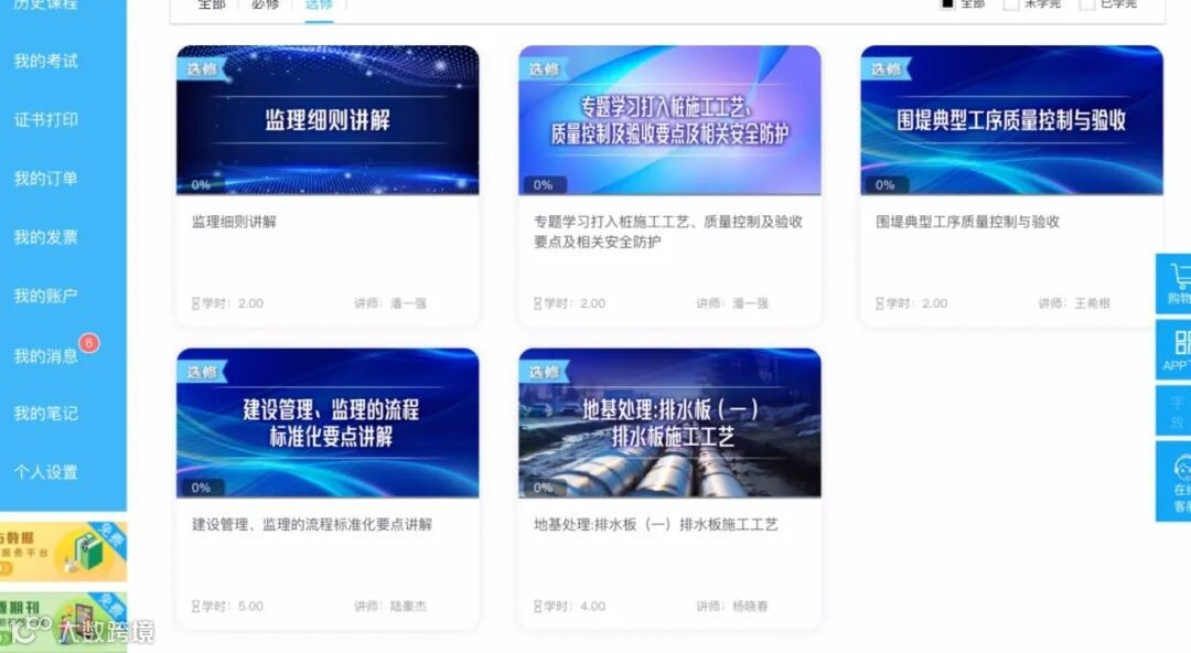 为填补继续教育网上港口专业课的空白,由海港建设内训师录制的内部课程(含《地基处理:排水板(一)排水板施工工艺》《建设管理、监理的流程标准化要点讲解》等课程)纳入选修课程。