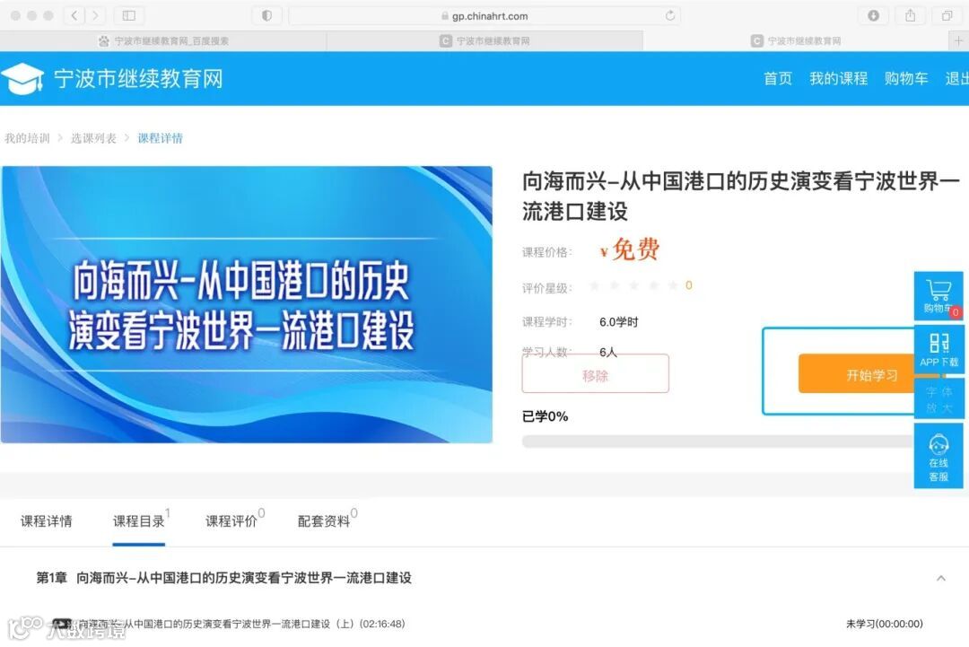 宁波市继续教育学习平台(网址http://nbzj.chinahrt.com/index.html) (或移动端登录“融学”APP进行学习)。