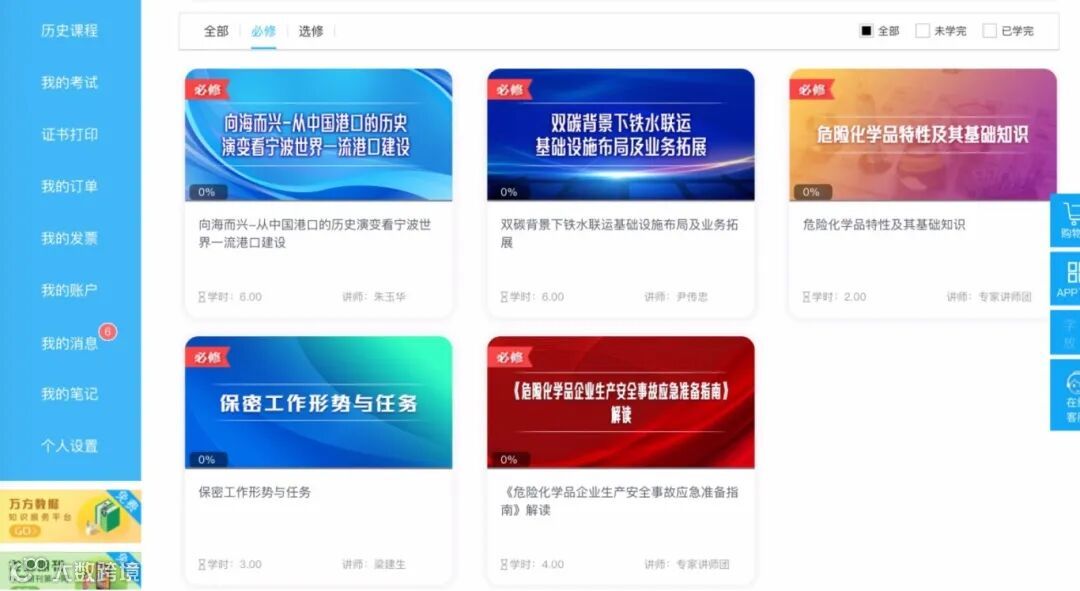 2024年网上专业课充分考虑集团专业技术人员的特点和需求,安排2门港口特色课程、1门保密课程和2门安全课程为统一必修课,作为各类职称专业技术人员首要学习的课程。