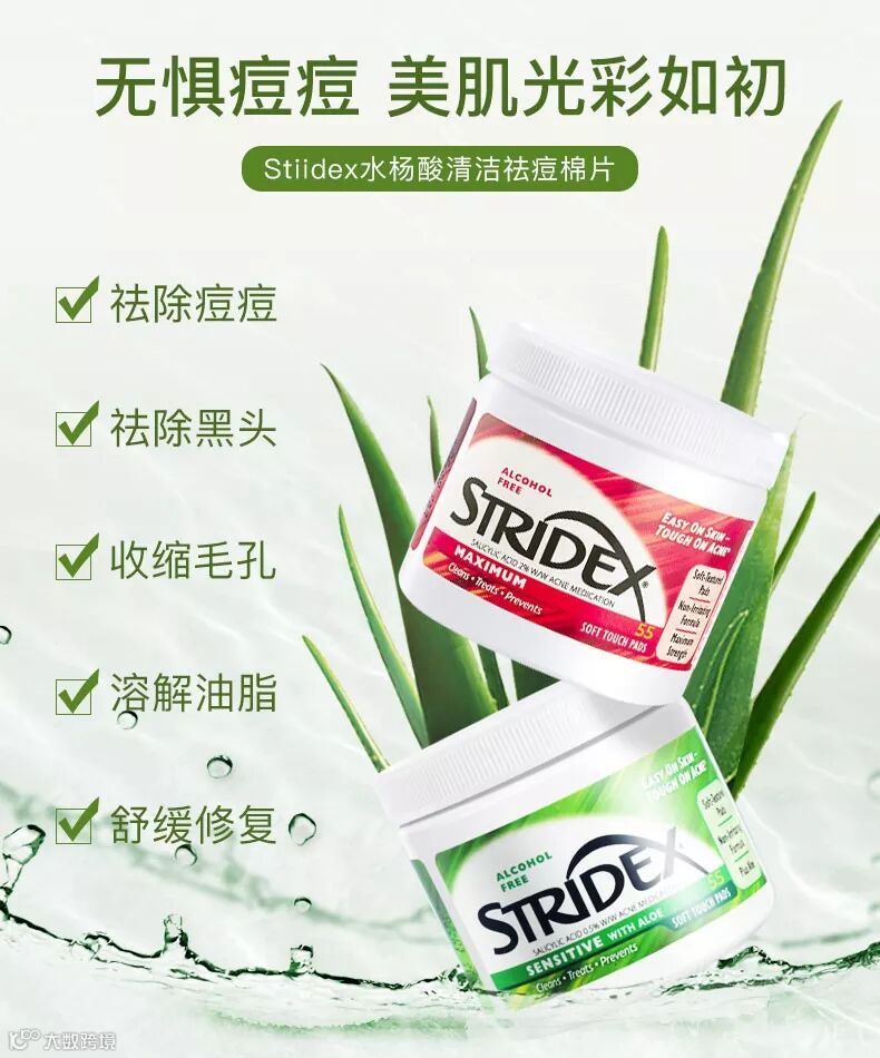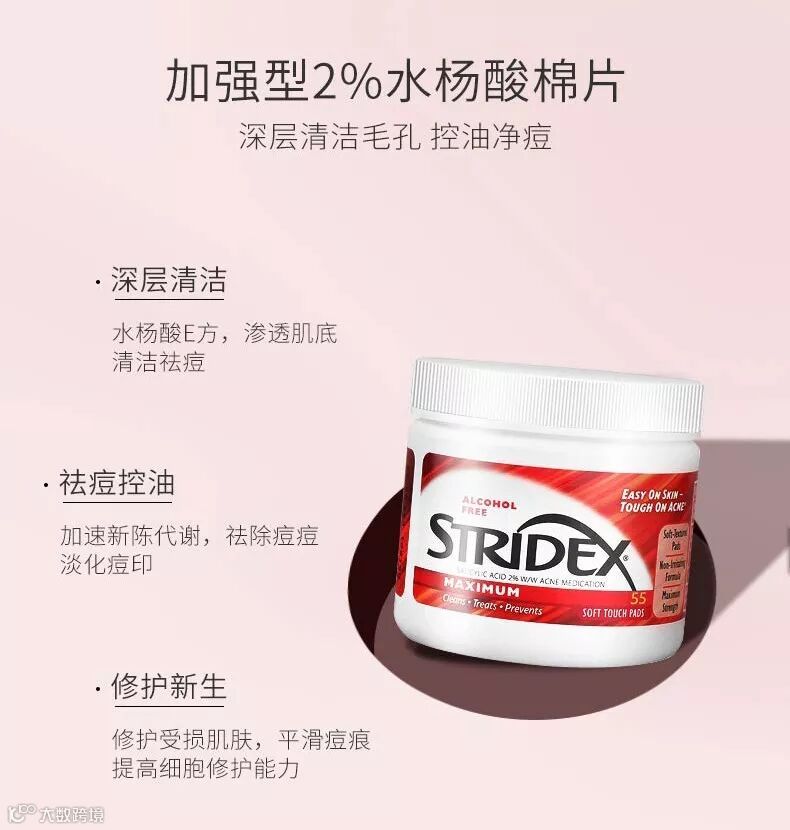 美国Stridex水杨酸棉片, 是美国60余年的老品牌,是美国第一款抗痘棉片,也是美国第一款不需要医生处方的祛痘棉片。