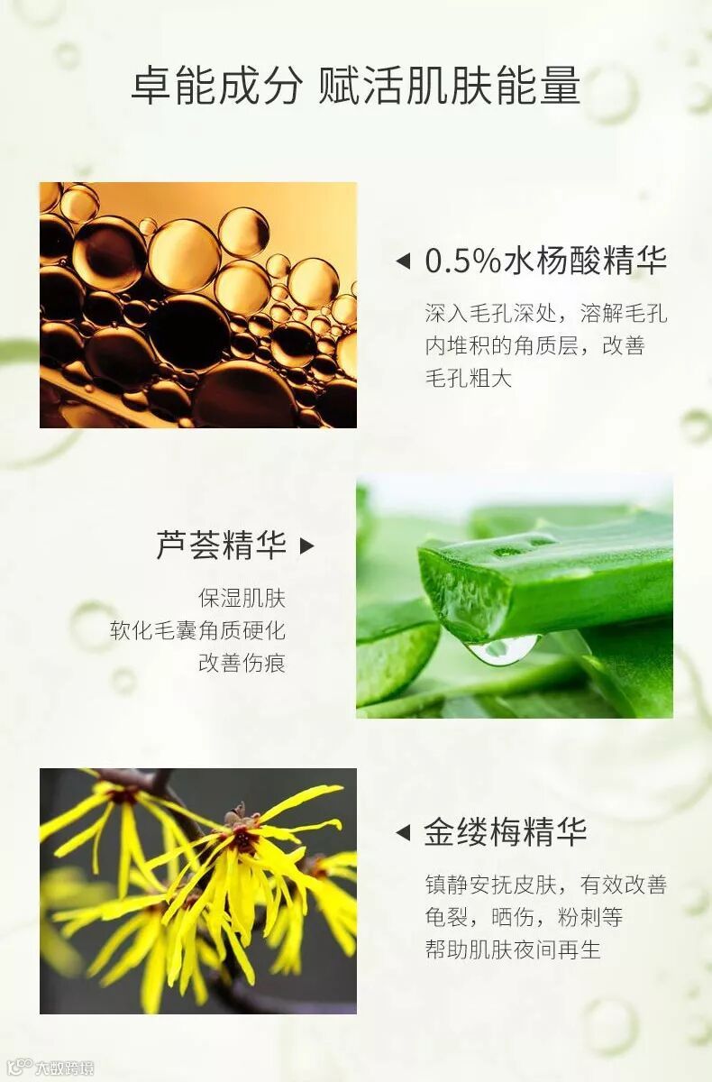 经过几十年的市场检验,配方精良、科学配比水杨酸、芦荟等精华成分,贴合肌肤需求,针对不同肤质调整配方,真正做到了精准化护理肌肤。