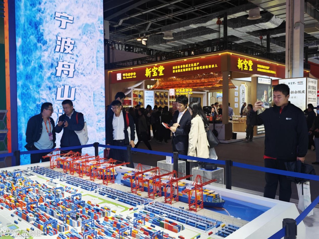 集团在此次展览中设置了189平方米的展位,以“港通天下 服务世界”为主题,通过“港通天下的能力”“服务世界的链力”和“行业领先的智力”三块内容,利用LED数据看板、电动沙盘、VR等形式,全面展示宁波舟山港在建设成为支撑新发展格局的战略枢纽、服务国家战略的硬核力量等方面所取得的重要成果,展现集团在服务浙江构建更大范围更宽领域更深层次对外开放格局中发挥的重要作用。