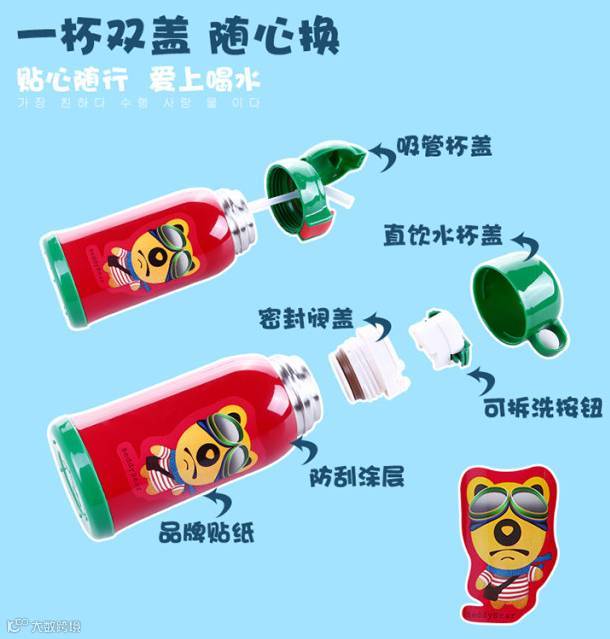 儿童杯具熊材质:304不锈钢,食品级硅胶吸嘴
