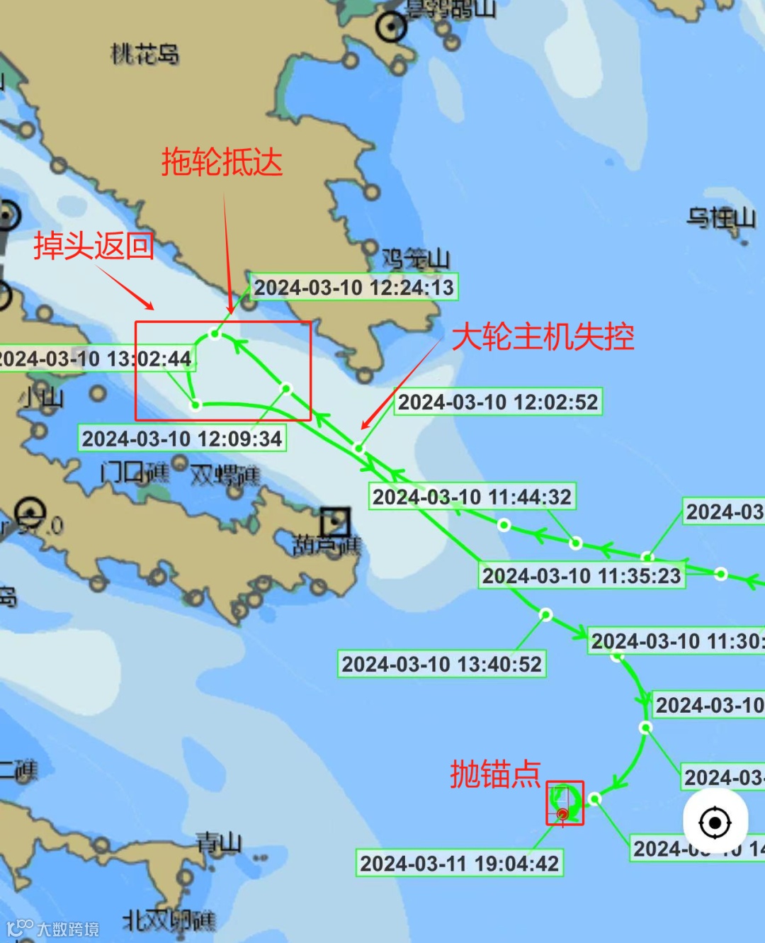 在拖轮和引航员的密切配合下,40分钟后,遇险船顺利完成掉头,同时初步排除了主机故障,暂时缓解了失控风险。在拖轮的监护下,遇险船于对向侧驶离航道,前往虾峙门南锚地抛锚,以便进一步检修。