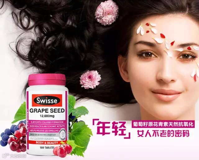 澳洲原装进口swisse葡萄籽片180粒 花青素精华提取物OPC缓解肿胀