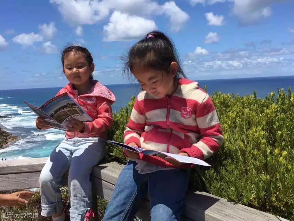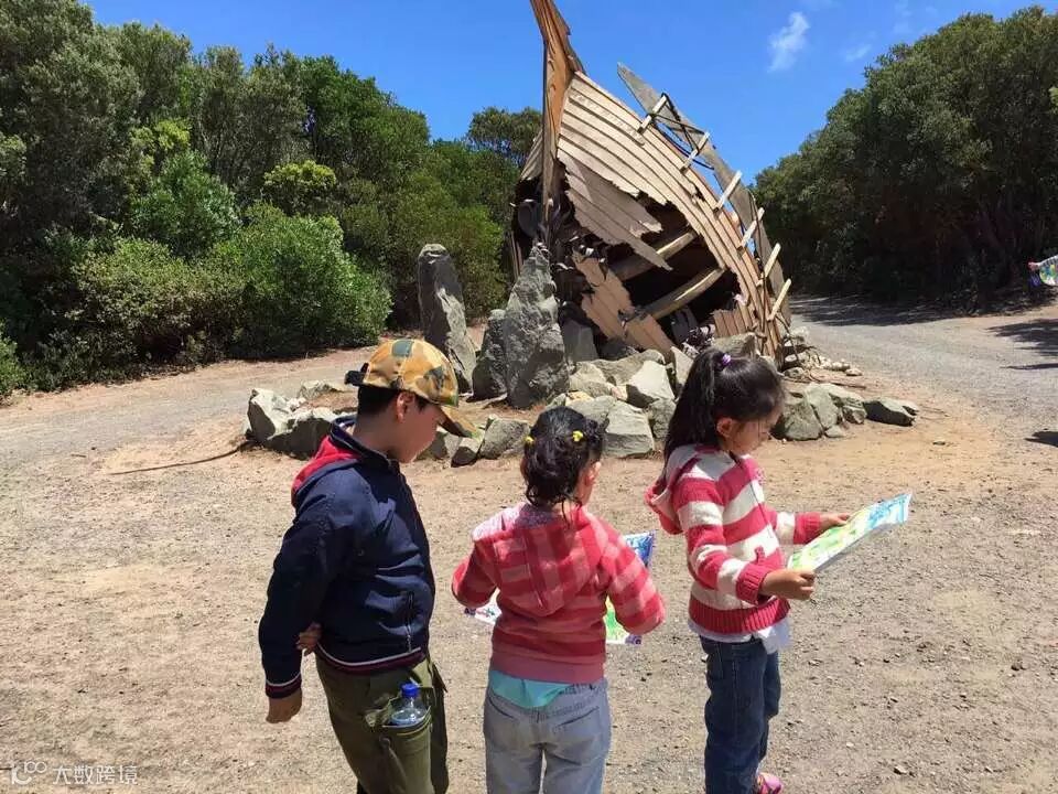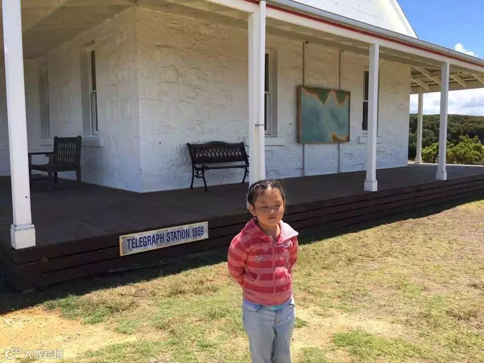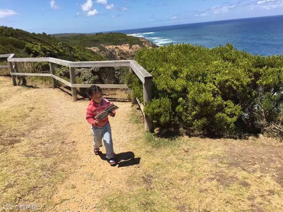 从Apollo Bay向西南30多公里就是著名的Cape Otway景区,内有古老的灯塔,还有丛林探险路,我们只能看看灯塔之类了。买了门票一进去发现还很多路要走,小的在烈日下已经要抱抱了,工作人员给了我们几张地图,地图很卡通,整个行程孩子们争先恐后地当向导,忘了热忘了累,澳洲的旅游服务水平高!这里竟然还有些恐龙化石!