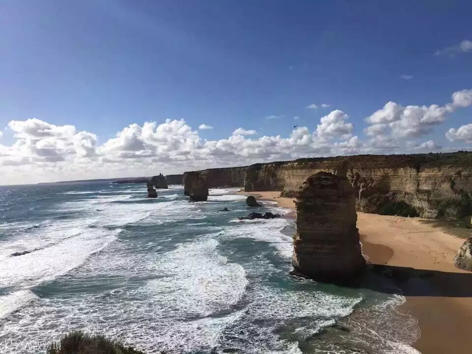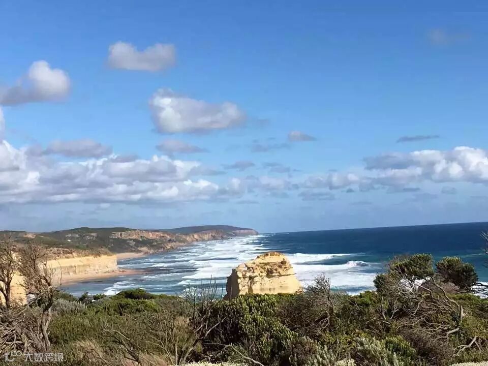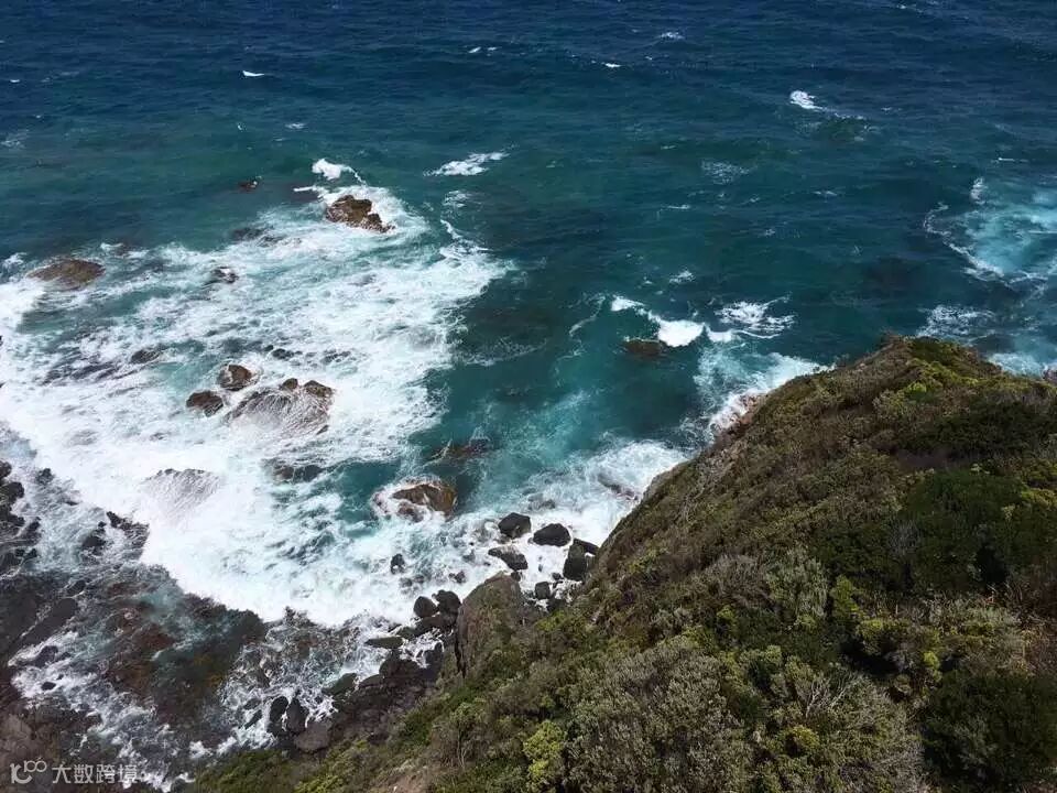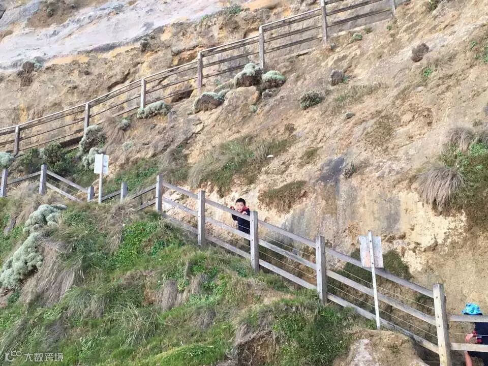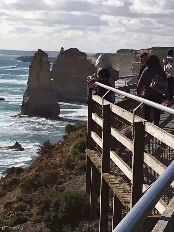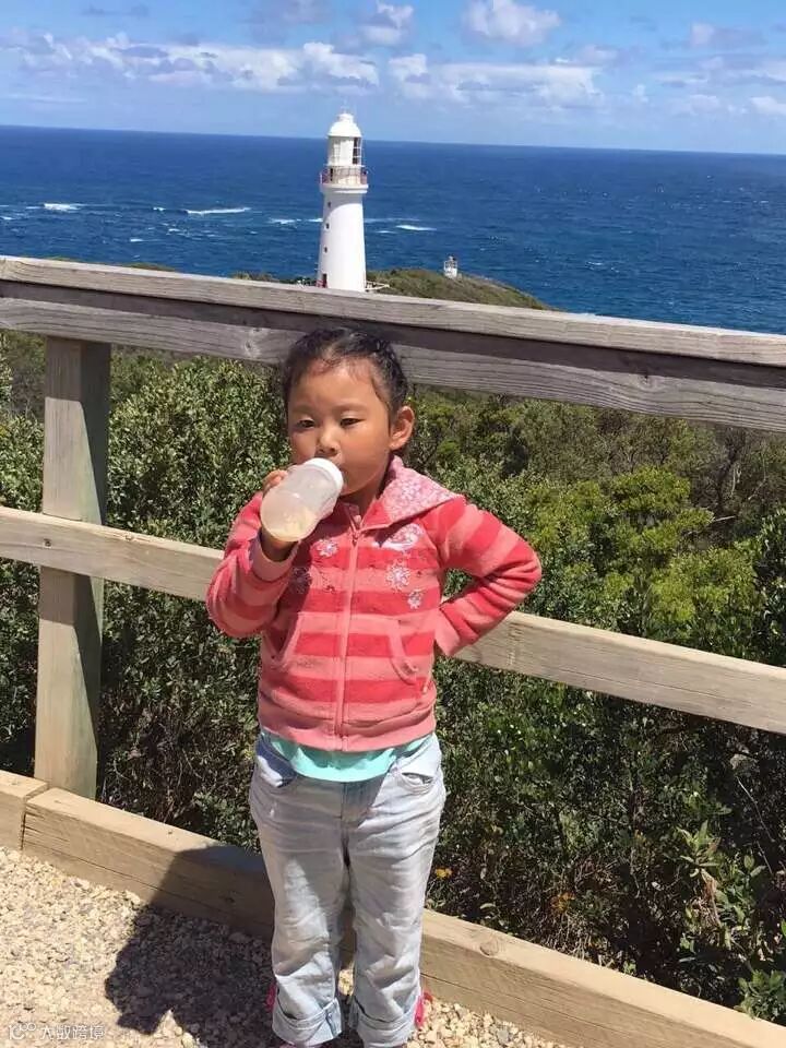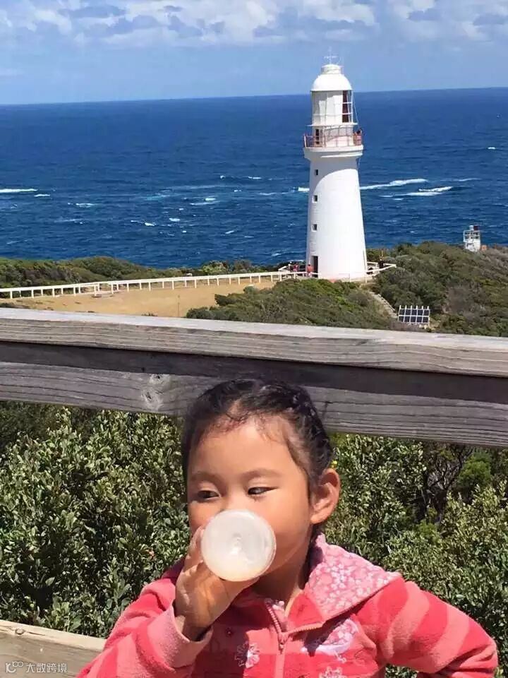 从灯塔上看海景非常壮观,绝对是大洋路上必看的景点,小的心血来潮让我拍一张喝奶奶的相片,难道灯塔的白色和形状让她联想到她的宝物?顺便也给我自己拍了一张(图四)。