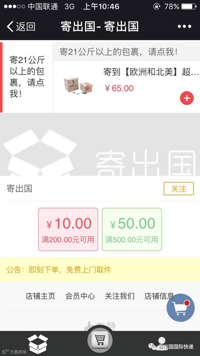 (需要关注微信公众号“寄出国国际快递”——我要寄——下订单——页面最底端选择您所需要优惠券 )