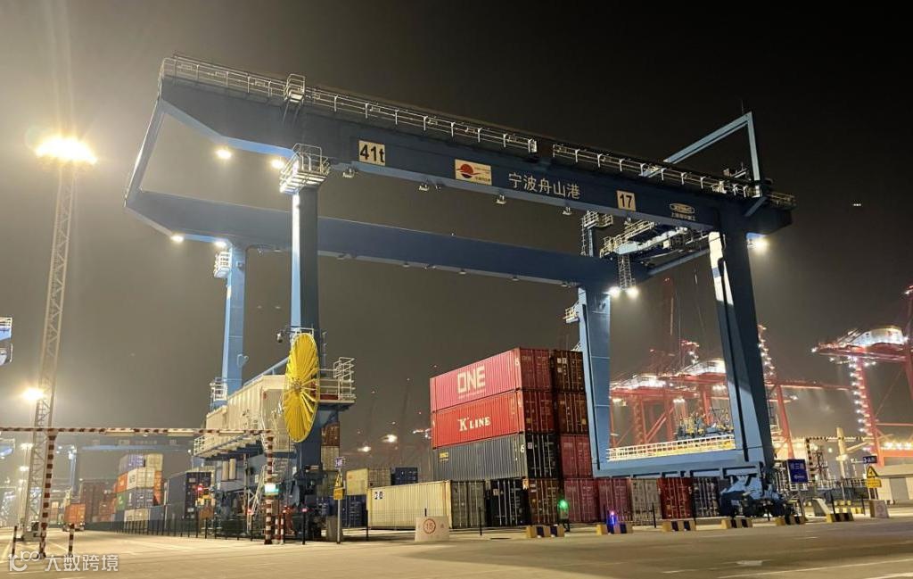 夜幕降临,甬舟公司堆场区域虽然“灯光稀疏”,但自动化轨道吊的作业依旧行云流水、一气呵成,火热程度不亚于白昼。与以往的“灯光通明”相比,这一技改预计可让甬舟公司节约耗能成本近50万元。