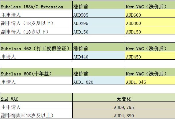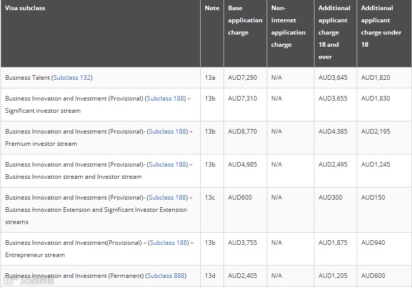 澳洲移民最受关注的签证类别费用变化整理如下: