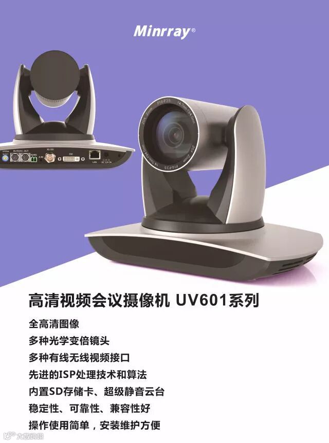 高清摄像机UV601具有30倍/20倍/12倍/等多倍光学镜头;具有72.5°广角无畸变视角;支持HDMI、SDI、USB3.0、USB2.0等多种视频输出接口;支持多种网络协议,应用于互联网+党建、远程医疗、智慧政务、互动课堂等应用场景。