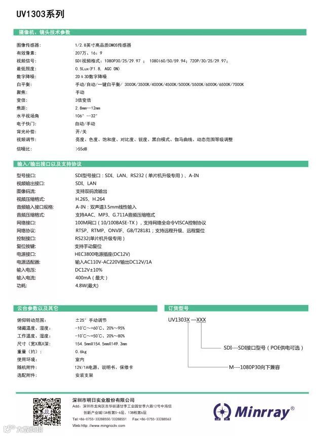 UV1303摄像机外形精致,支持多种网络协议,采用3倍超广角手动聚焦镜头,满足不同场景需求。应用于:远程教育、教学录播、会议系统、远程培训、远程医疗、庭审系统、应急指挥系统等。
