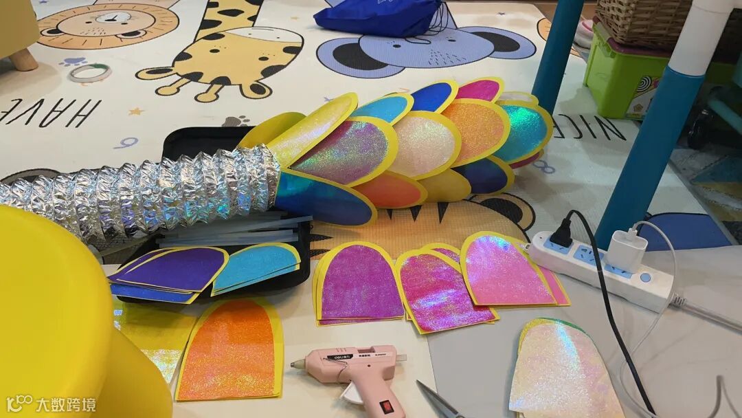 2.粘贴龙鳞,拉长烟管,从尾部开始倒着贴(从龙尾往龙头方向贴),会有张开的效果,用胶枪依次错开覆盖粘贴。