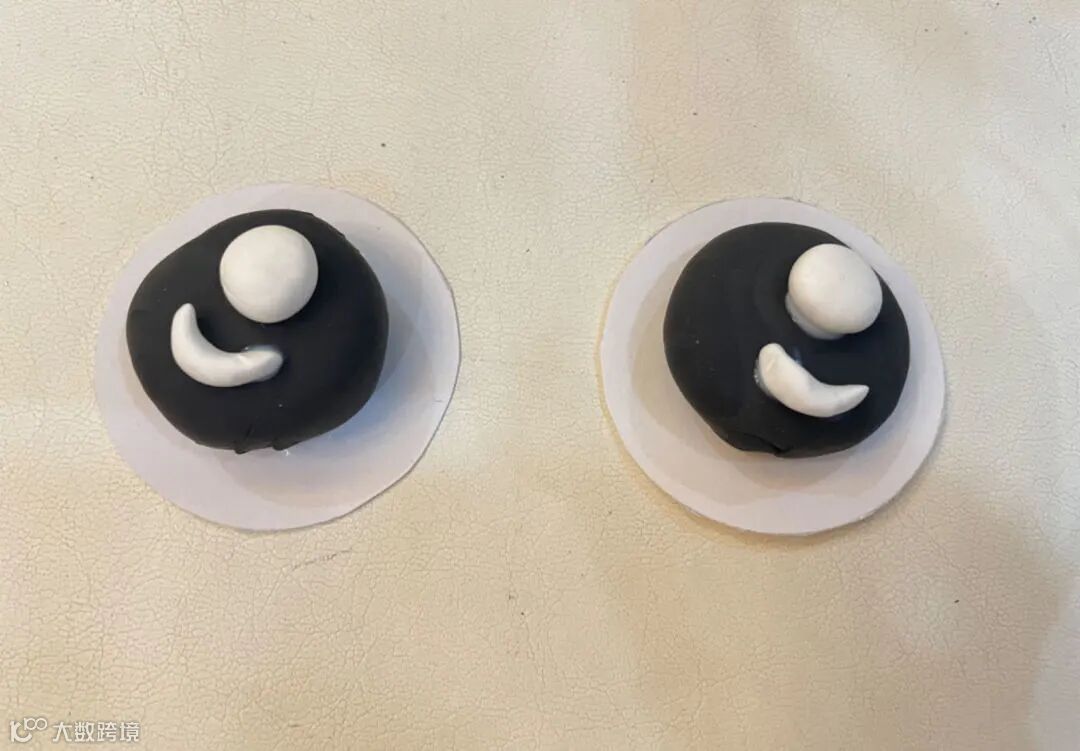 5.用白卡纸打底,使用超轻粘土制作出龙眼,并用毛毛球、扭扭棒装饰龙头。