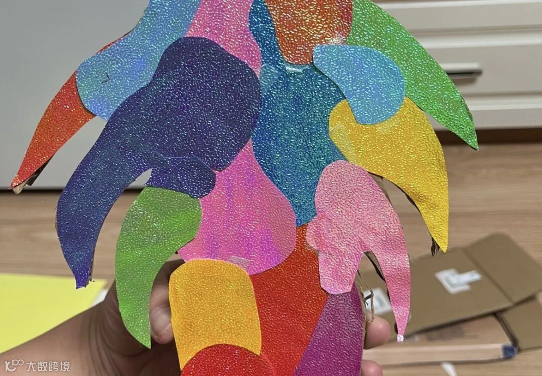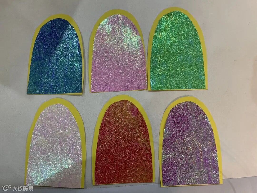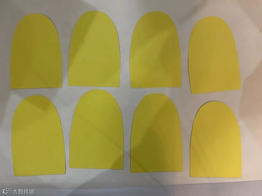 1.剪出龙鳞的形状,黄色卡纸大些,珠光纸小一圈,用双面胶将珠光纸贴在卡纸上。