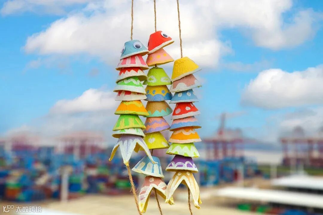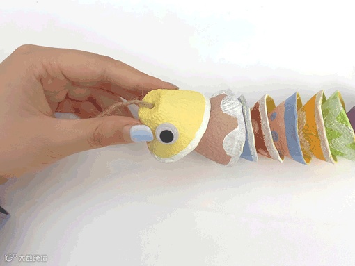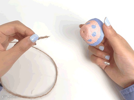 使用麻绳将蛋托按自己喜欢的顺序串起来。