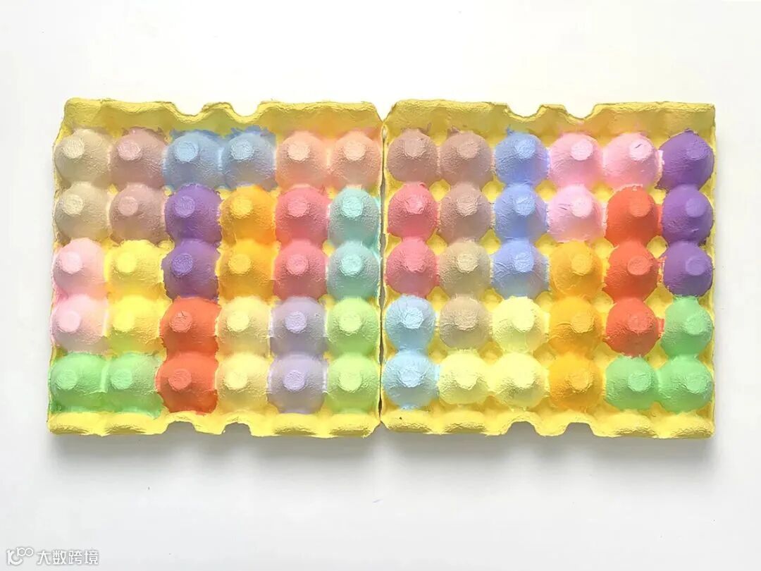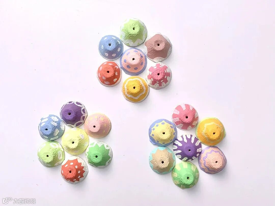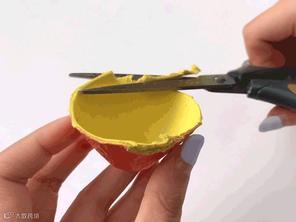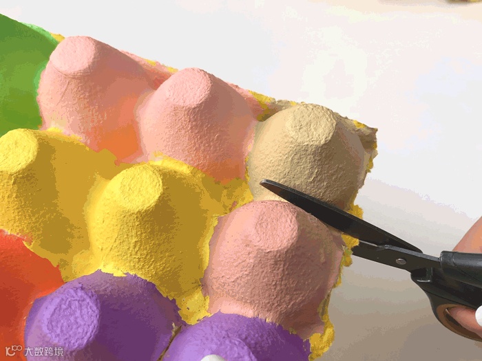 颜料晾干后,将蛋托依次剪下,并将边缘修剪平滑。