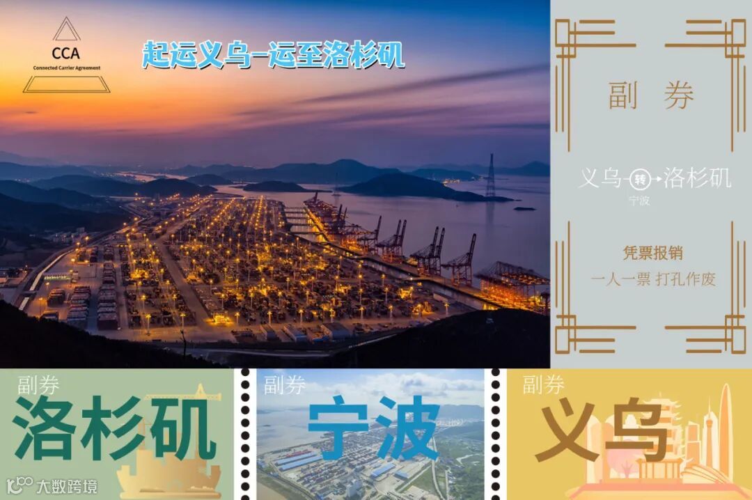 举个例子:义乌的小海前往洛杉矶旅游,先购买“义乌-宁波”的高铁票,再购买“宁波-香港-洛杉矶”的中转机票,则需要手持三张票据,并经历义乌火车站和宁波机场两次安检。而签订了CCA的货物从义乌经宁波舟山港运往洛杉矶,无论经历几次转运,只需持有一张经济实惠的CCA“套票”,且全程只需过一次海关“安检”。