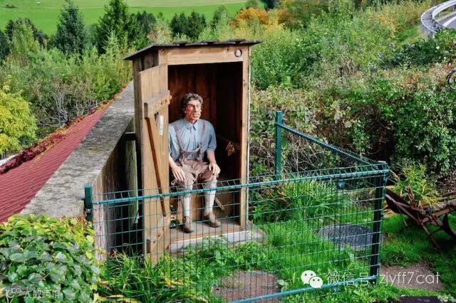 在高速公路上,模仿卫生间和正在方便的大叔的搞笑装置把猫猫逗得乐开怀。